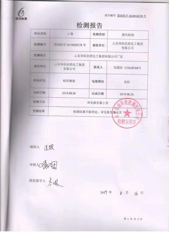 公司動(dòng)態(tài) 首頁(yè) > 華陽(yáng)新聞 > 公司動(dòng)態(tài) > 列表 山東華陽(yáng)農(nóng)藥化工集團(tuán)有限公司土壤環(huán)境檢測(cè)報(bào)告